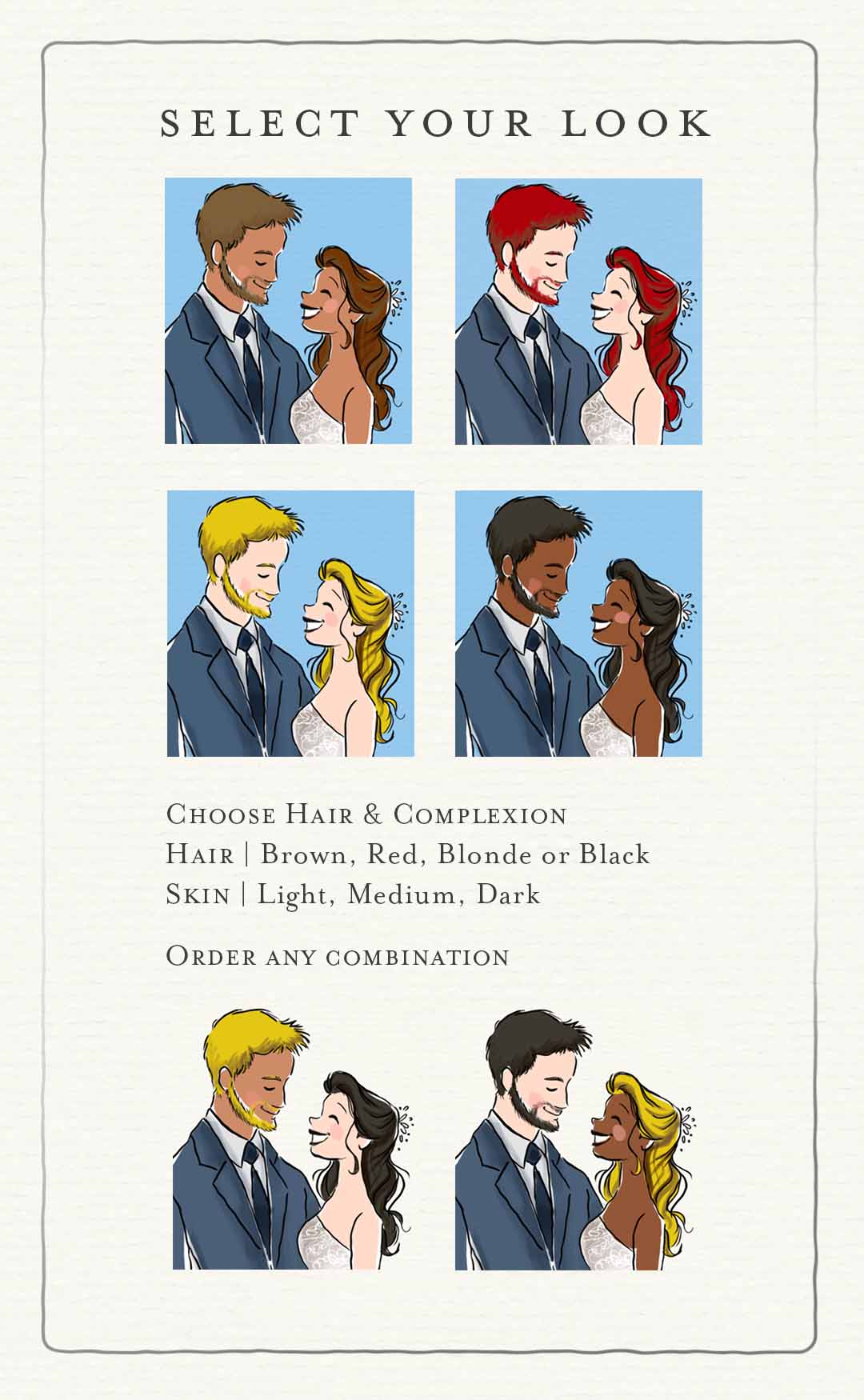 Gorgeous illustrations of you and your partner come to life in this joyful design. This gorgeous design will provide a unique, easy and stylish way to announce your special day to those important in your lives.